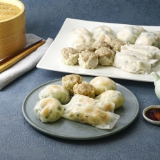 国産豚の焼売と2種饅頭・海老蒸棒餃子のセット